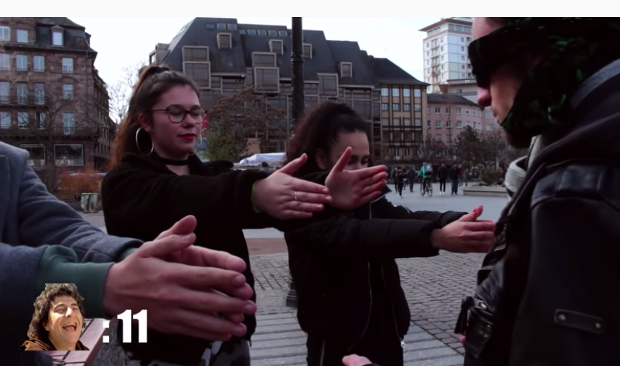 Vidéo commentée sur une séance en Street Hypnose, où l'hypnotiseur a les yeux bandés. Cela complique évidemment la tâche...